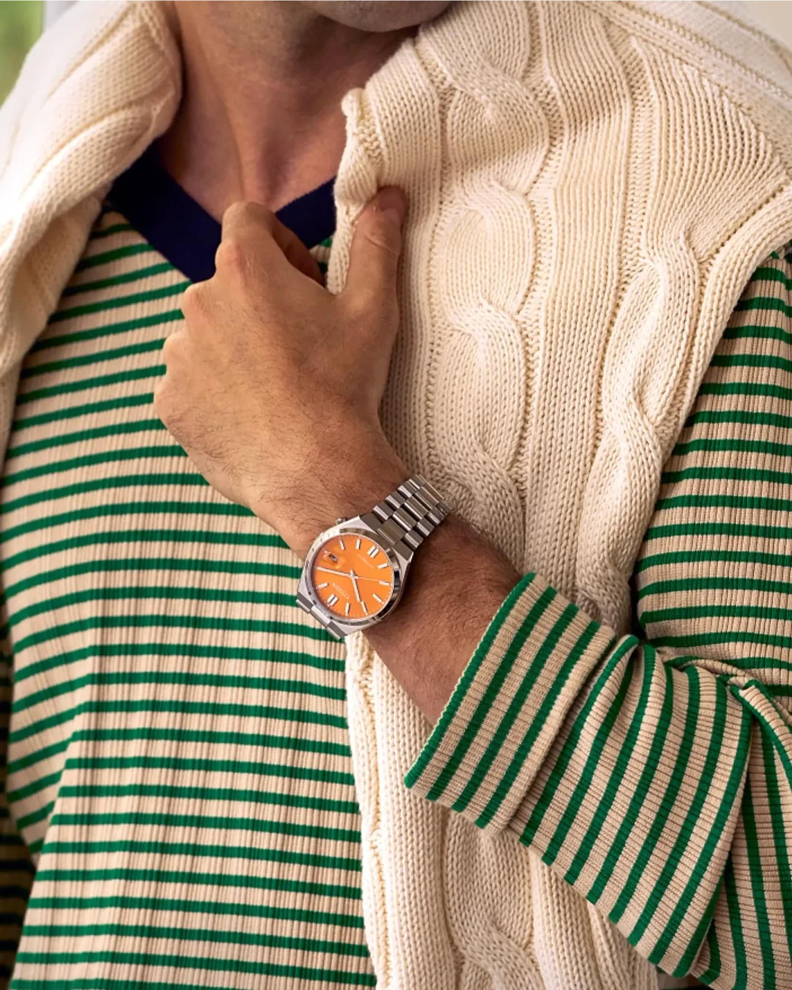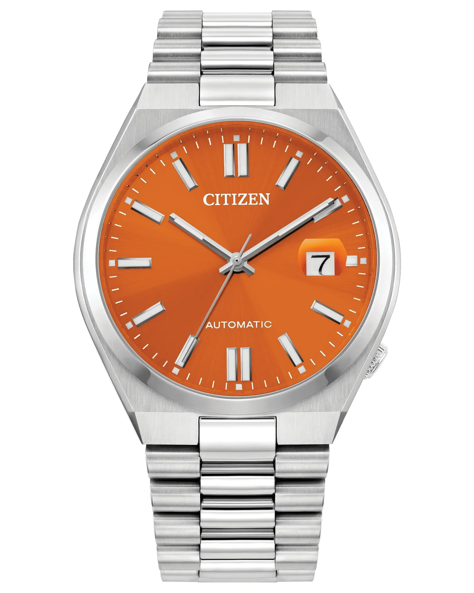 Save $145, at 25% Off. Take action and show your inner drive with the sporty styling of the Brycen, the latest addition to the Weekender collection. Featuring a silver-tone Super Titanium™ case with a brushed finish, the 41mm timepiece is durable in form and function with its matching bi-directional rotating bezel and triple-link bracelet. On the dial, a sunray orange texture serves as the eye-catching backdrop to highly legible timekeeping elements, while a 3 o'clock date window provides daily utility. Featuring our proprietary Eco-Drive technology – sustainably powered by light, any light. Never needs a battery. Caliber number J810.